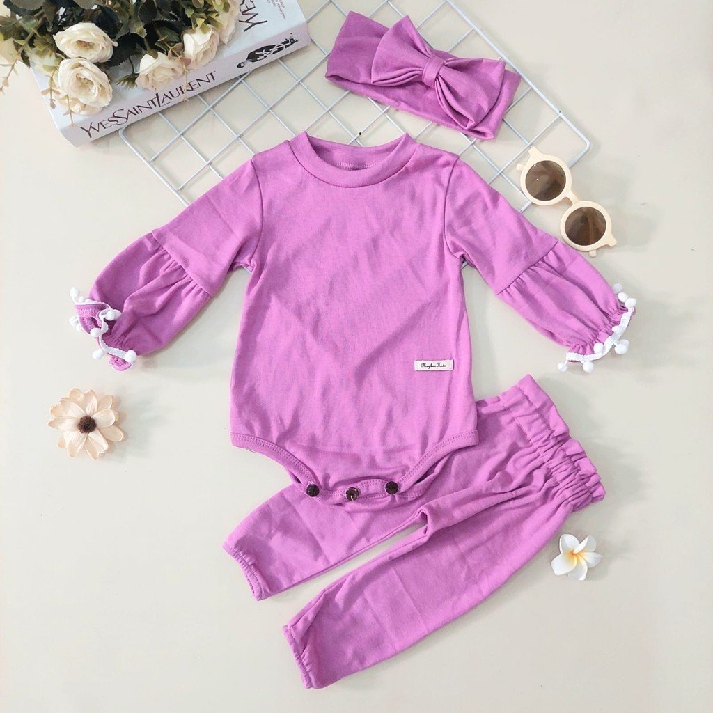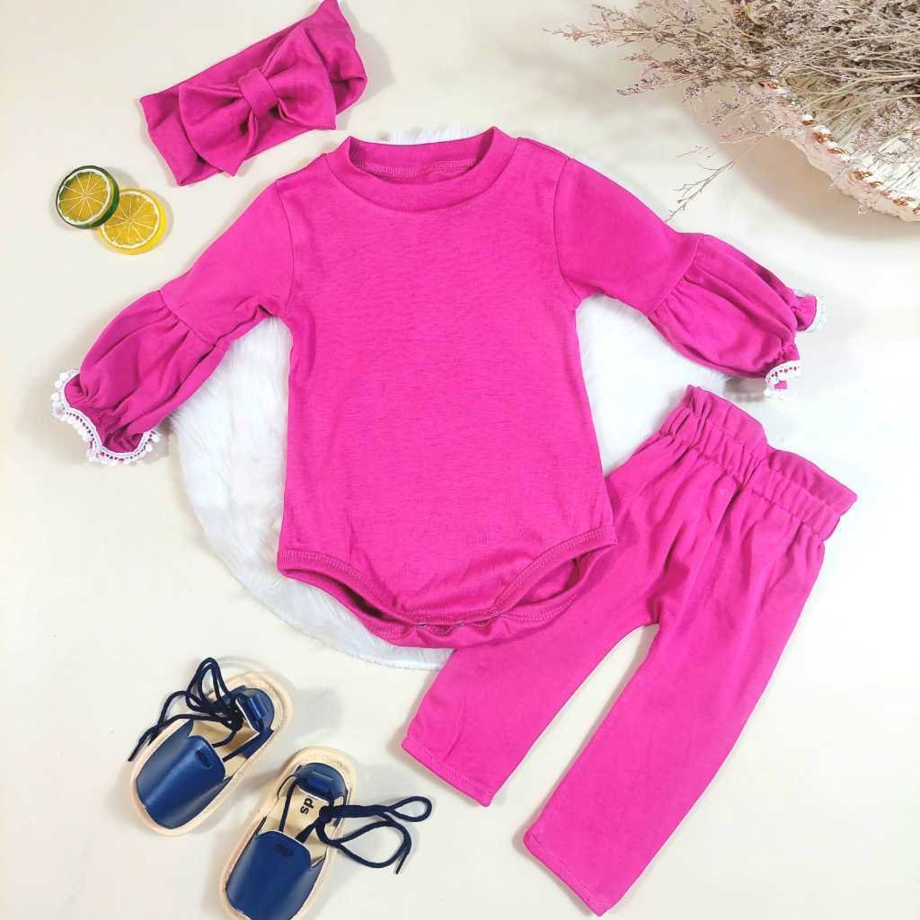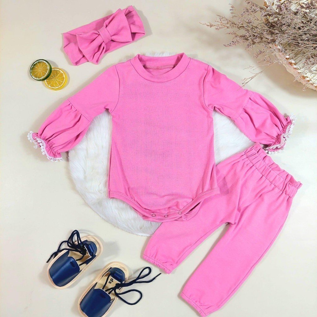 oneset ini cocok banget buat bayi yang aktif, terdapat renda bulat-bulat di bagian lengannya, tambahan bandana pita yang super cantik, oneset ini cantik buat jalan-jalan loh Bund✨